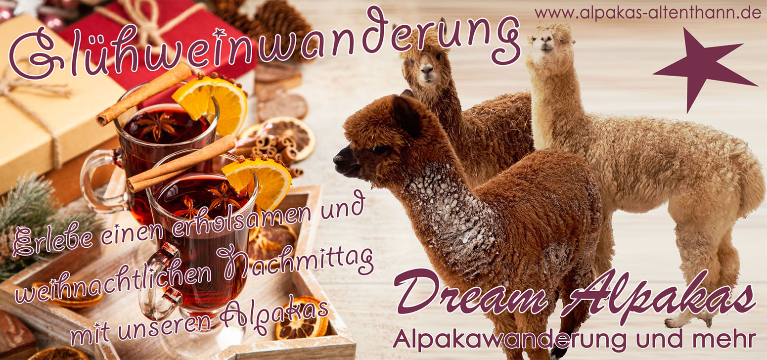 Max. zwei Personen je Alpaka, zwei Tassen Glühwein / Kinderpunsch inklusive.